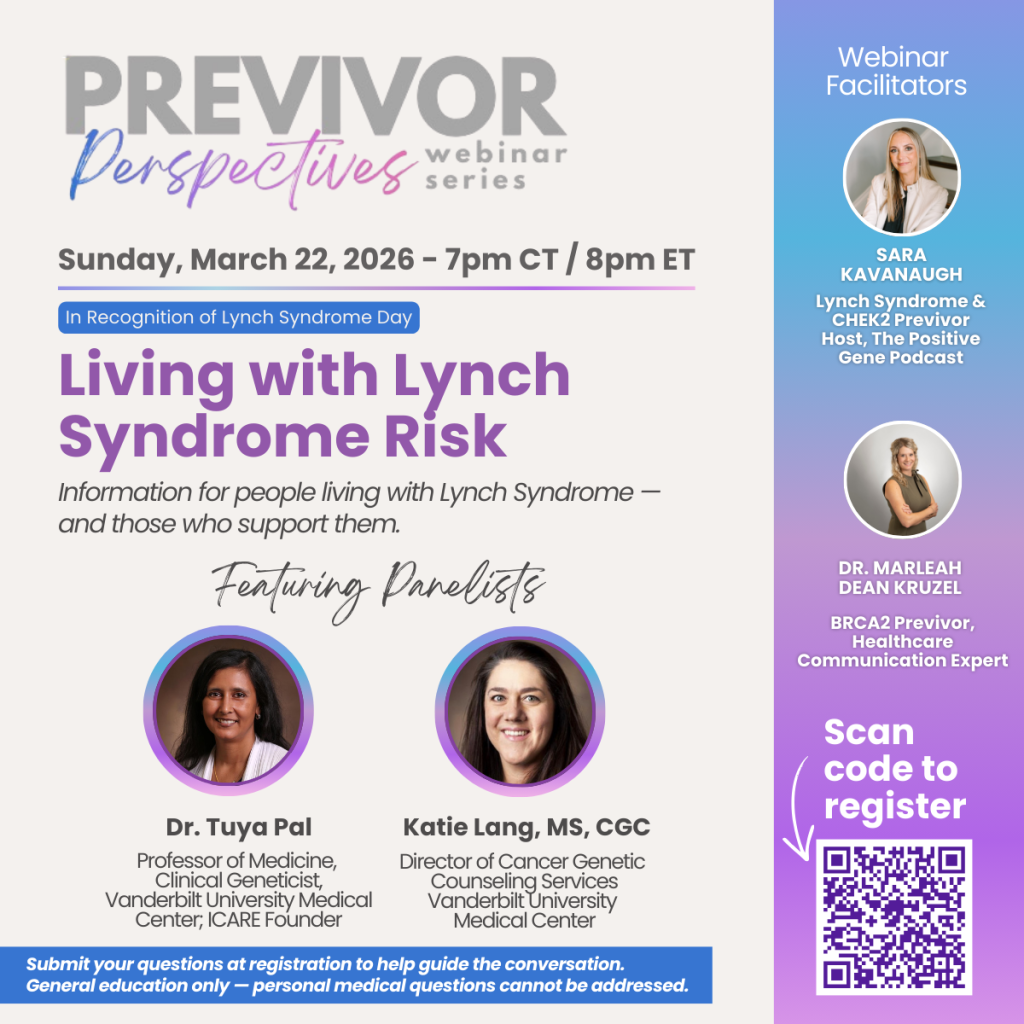 - Topic: Previvor Perspectives Webinar Series: Living with Lynch Syndrome Risk